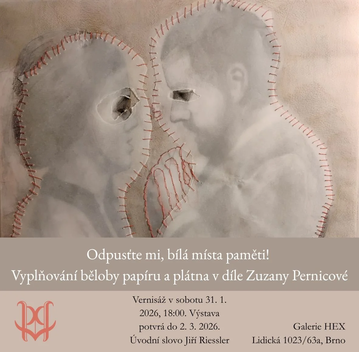 Od 31. 1. 2026 do 2. 3. lze výstavu navštívit, vzít si pohlednici s doprovodným textem, nebo si přečíst kurátorský text. V polovině února se můžete těšit na setkání s autorkou a menší výstavní metamorfózu, neboť část vystavených děl je možno ukázat ještě úplně jinak.